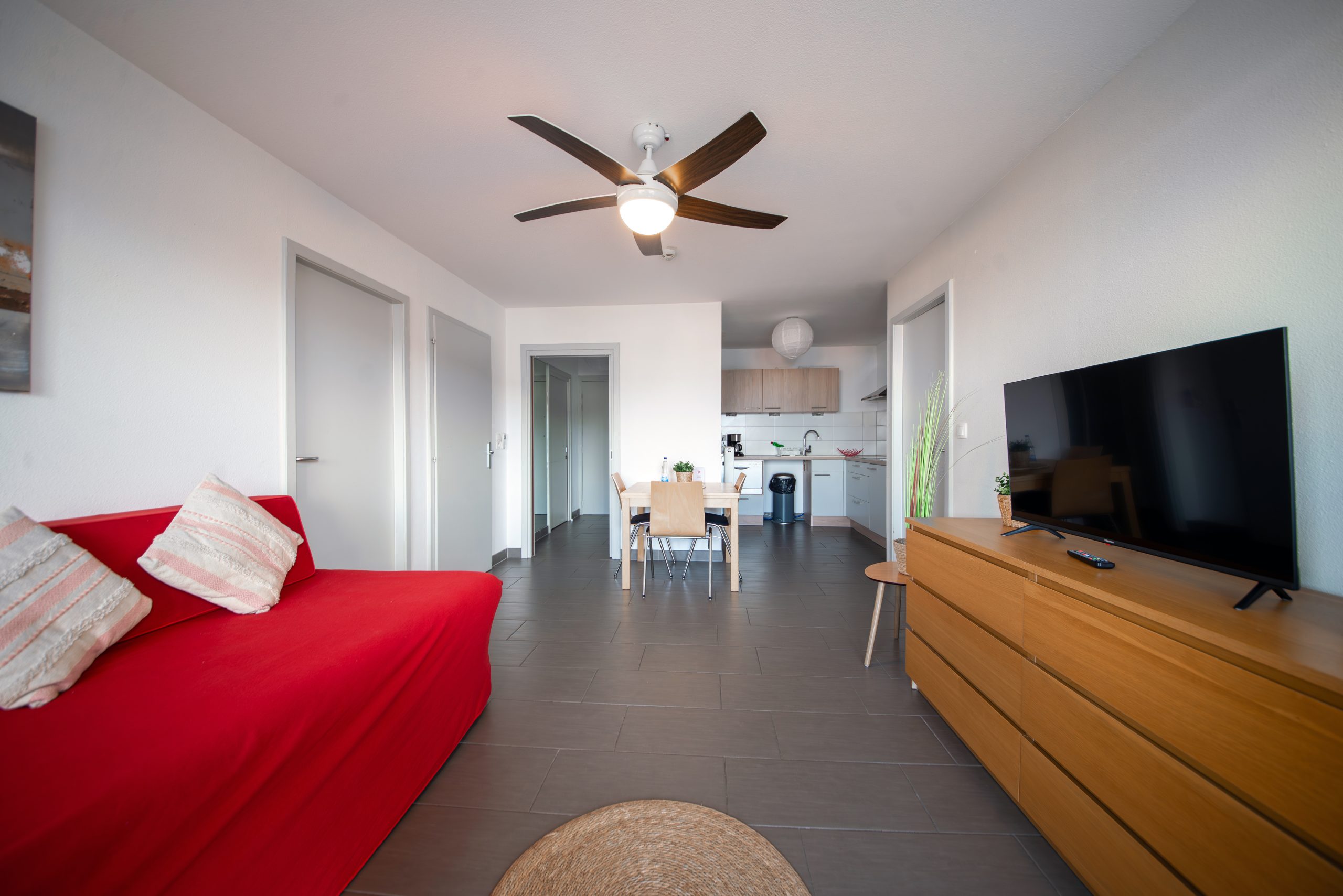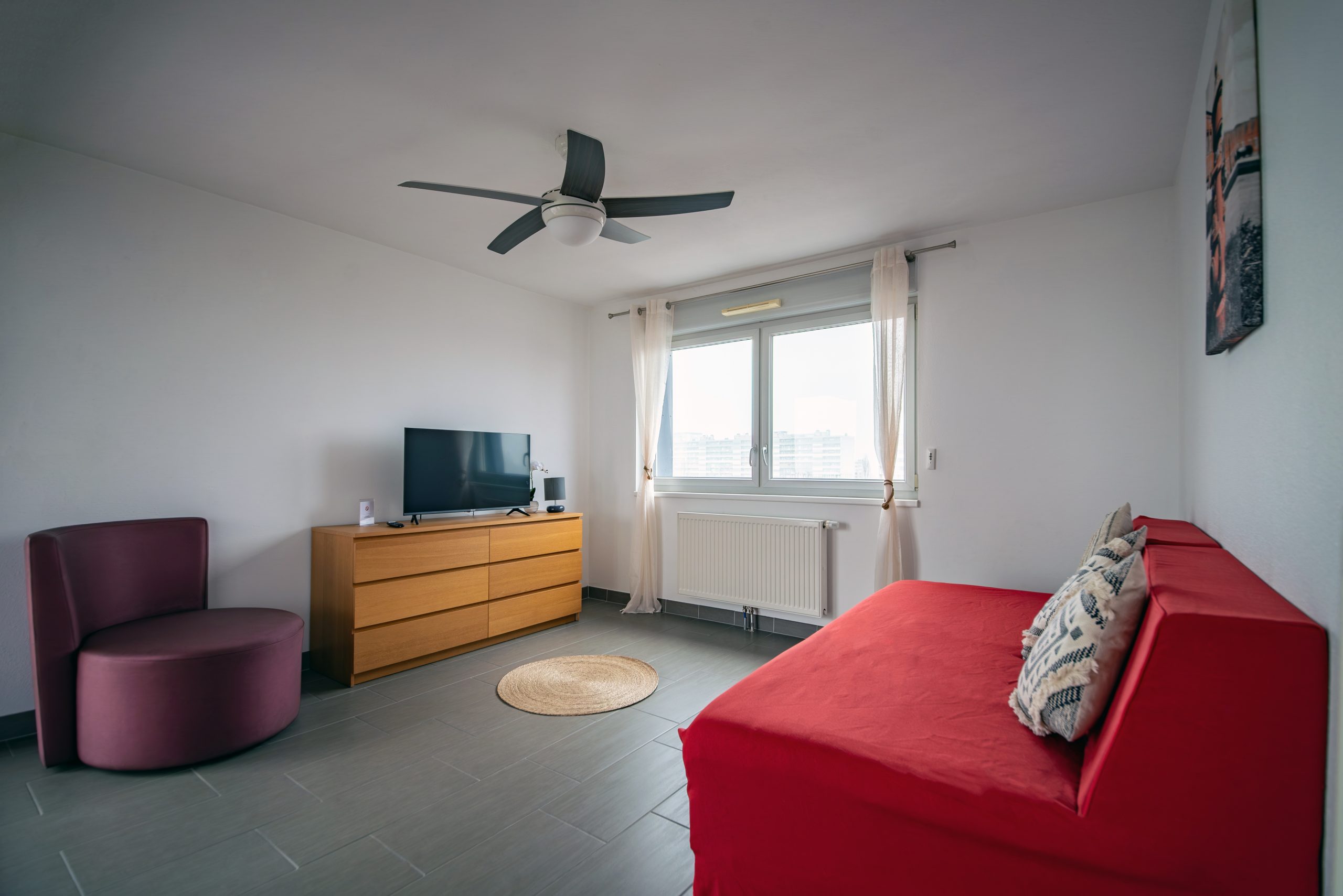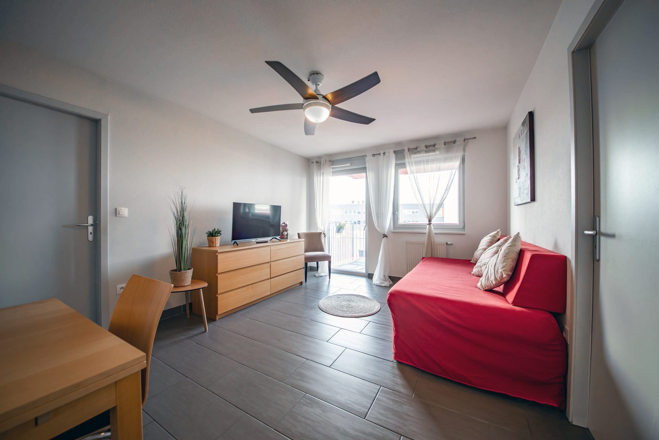 À l’Appart’duTrident, notre appartement F2 Supérieur sont parfait pour les couples ou les familles. Profitez d’un espace de vie séparé et spacieux, d’une chambre confortable et un espace salon pouvant être aménagé avec 2 lits d’appoints, l’idéal pour une famille avec enfants, mais également d’une cuisine entièrement équipée et d’une salle d’eau moderne. Cet appartement spacieux et fonctionnel offre tout le confort pour vous détendre après une journée bien remplie à Mulhouse et dans la région.