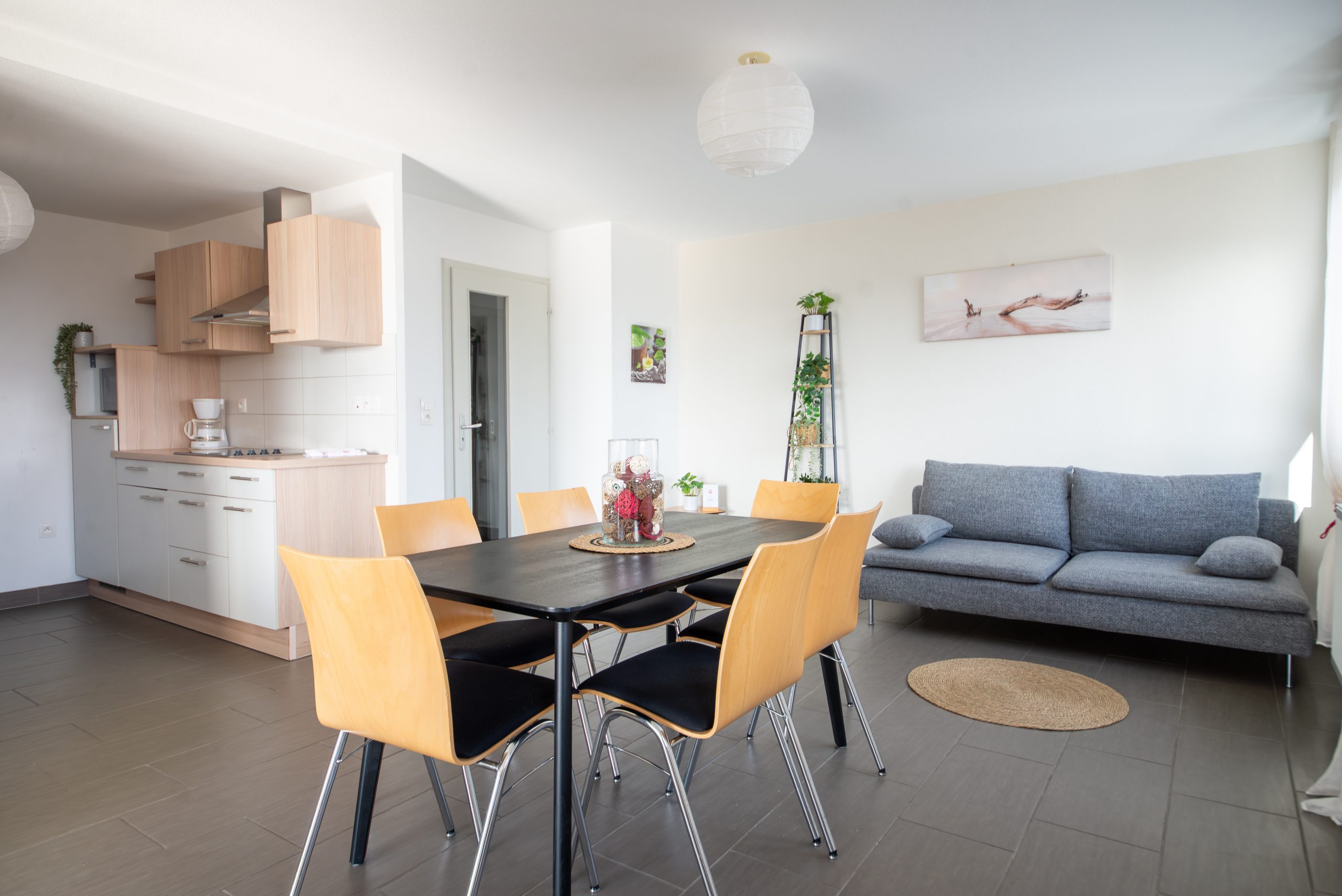 Nos appartements F3 à l’AppartDuTrident offrent un espace généreux et convivial pour les familles ou les groupes d’amis. Avec deux chambres séparées, un salon confortable, une cuisine entièrement équipée et des commodités modernes, cet appartement spacieux vous offre tout le confort nécessaire pour un séjour relaxant à Mulhouse.